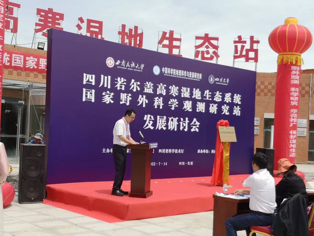 2022年7月14日,由西南民族大学、中国科学院地理科学与资源研究所、9999js金沙老品牌共建的“四川若尔盖高寒湿地生态系统国家野外科学观测研究站”(简称若尔盖站)在四川省红原县西南民族大学青藏高原研究基地举行若尔盖站发展研讨会。国家民族事务委员会教育科技司、四川省科技厅、四川省发改委、四川省教育厅、四川省农业农村厅、四川省林业和草原局、阿坝州人民政府、红原县生态环境局、红原县科学技术和农业畜牧局,以及三家共建单位的领导、学者、师生参加了会议,并共同见证若尔盖站正式揭牌。若尔盖站于2020年入选国家野外科学观测研究站择优建设名单,并于2021年正式获批建设,为四川再添一重要国家野外站。